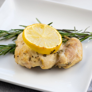 - Sprinkle thighs with rosemary, garlic powder, and salt.