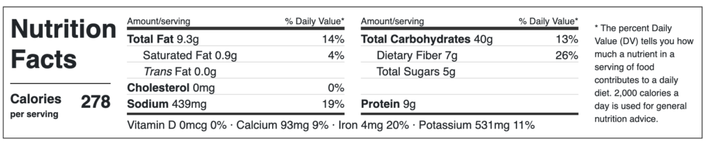 Source: Nutrition information for recipes is calculated by retrieving and compiling individual food data from the USDA database. Factors such as brand selection, size of produce, and preparation can change nutrition information in any recipe. We offer this information as an estimate only.